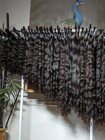 We have an exquisite collection of Rare Raw Straight, Wavy, and curly Indian Hair Extensions in lengths 8-18". This hair is collected from mature donors. These Luxurious wefts will be used for your custom wig services! No processing is used to achieve these curls, textures, or colors on these hair extensions.